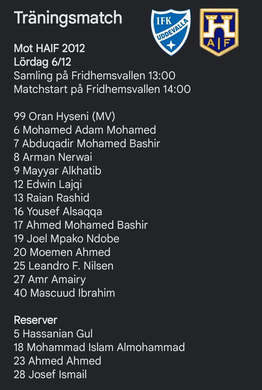 Träningsmatch mot HAIF 2012