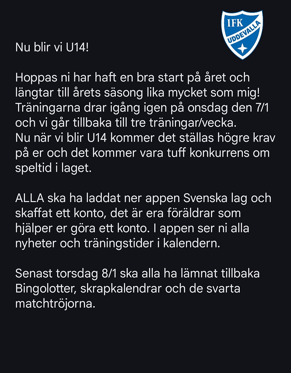 Nya träningstider från vecka 41